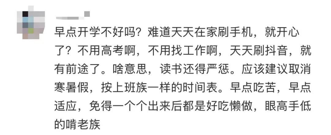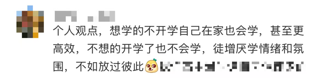 也有家长支持按规定时间开学,想学的自己在家也会学,不想学的开学了也不会学——
