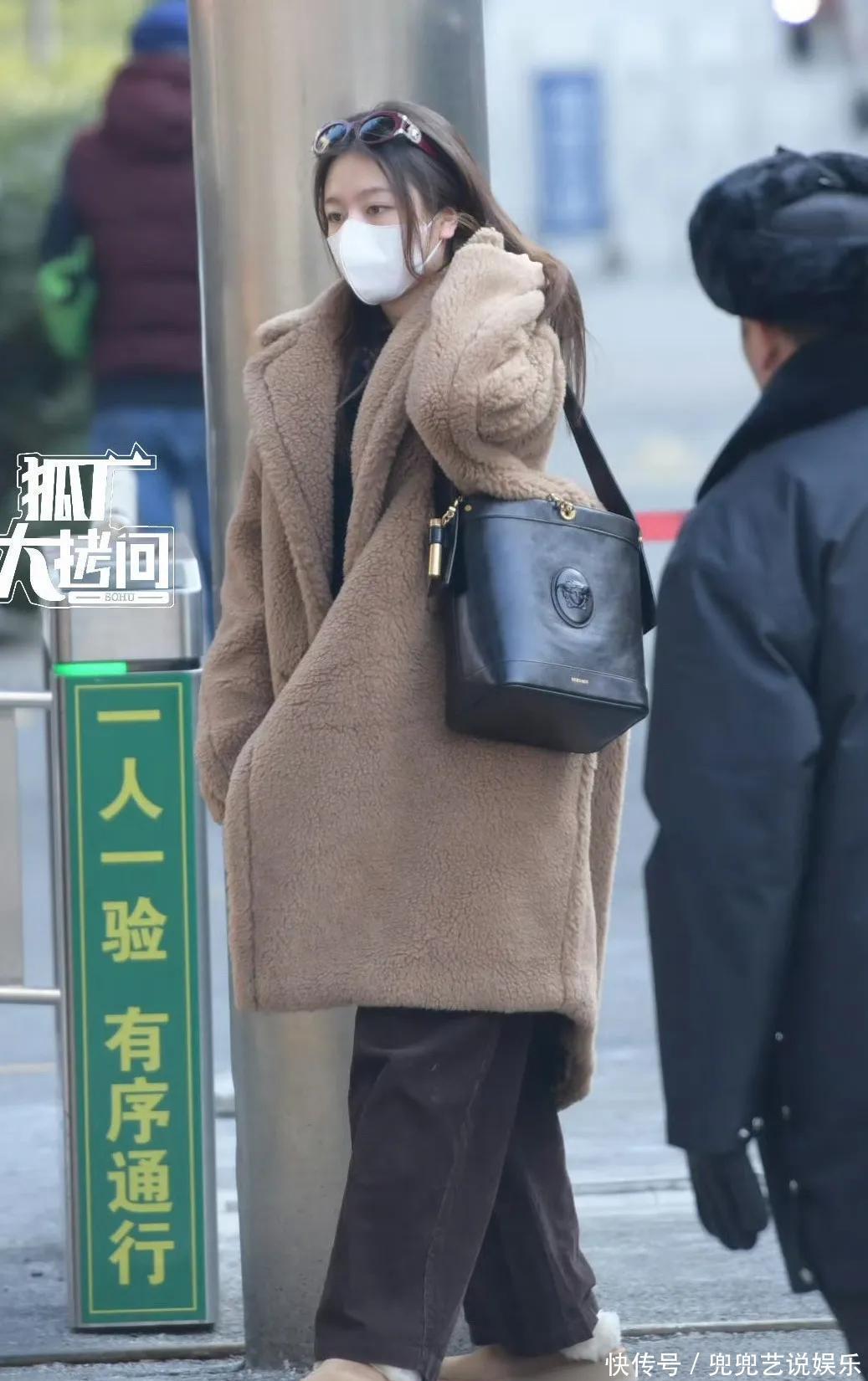 别的年轻女星都没欧阳娜娜这么抗冻,就拿李兰迪来说,她穿了一条棕色羊羔绒大衣,搭配同色系的雪地靴,明显保暖得多。她戴在头上的墨镜,也增加了一些时尚感;倒是那个名牌黑色包包,看起来平平无奇,跟造型还不太搭。