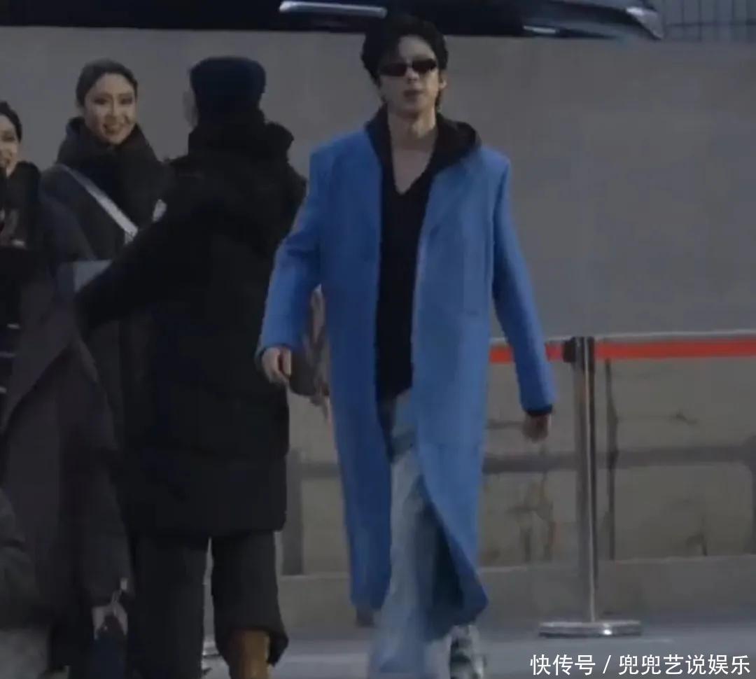 下班时,刘宇宁还穿着那件扎眼的蓝色大衣,虽然其他服饰都变得休闲许多,但他走起路来依然霸气十足,真有一种走到哪里、哪里就是秀场的感觉。