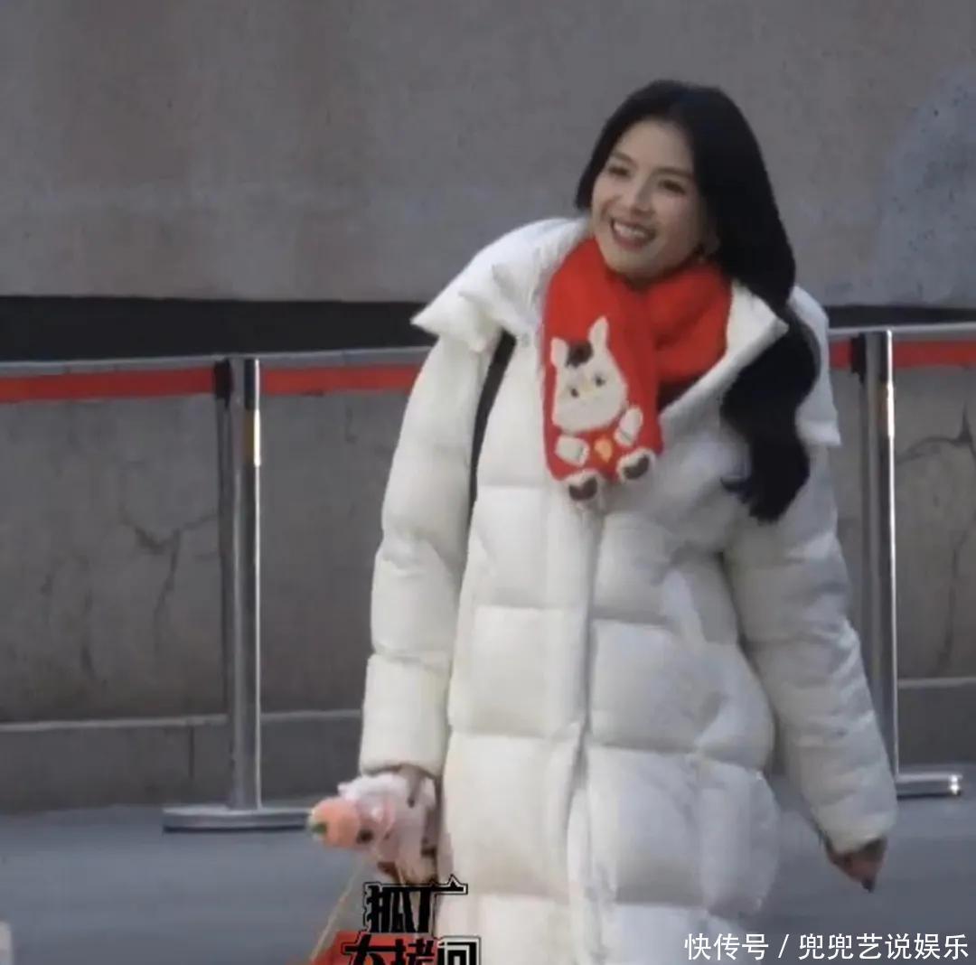 下班时刘涛几乎完全换了一套造型,雪白的长款羽绒服,用红色的小马围巾点缀,手里还提着红色包装的礼盒,看起来喜庆又应景,一股回娘家的气息扑面而来。